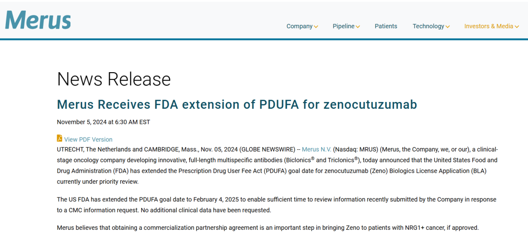 https://www.globenewswire.com/news-release/2024/12/04/2991955/37568/en/Merus-Announces-FDA-Approval-of-BIZENGRI-zenocutuzumab-zbco-for-NRG1-Pancreatic-Adenocarcinoma-and-NRG1-Non-Small-Cell-Lung-Cancer-NSCLC-Based-on-Safety-and-Efficacy-Data-From-the-.html