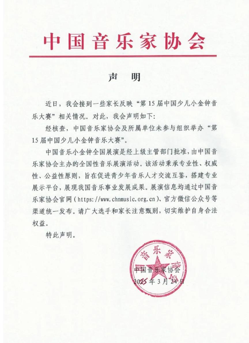 凯时体育游戏app平台中国音乐家协会:未办“第15届中国少儿小金钟音乐大赛”-尊龙凯龙时官网进入「中国」网页版入口