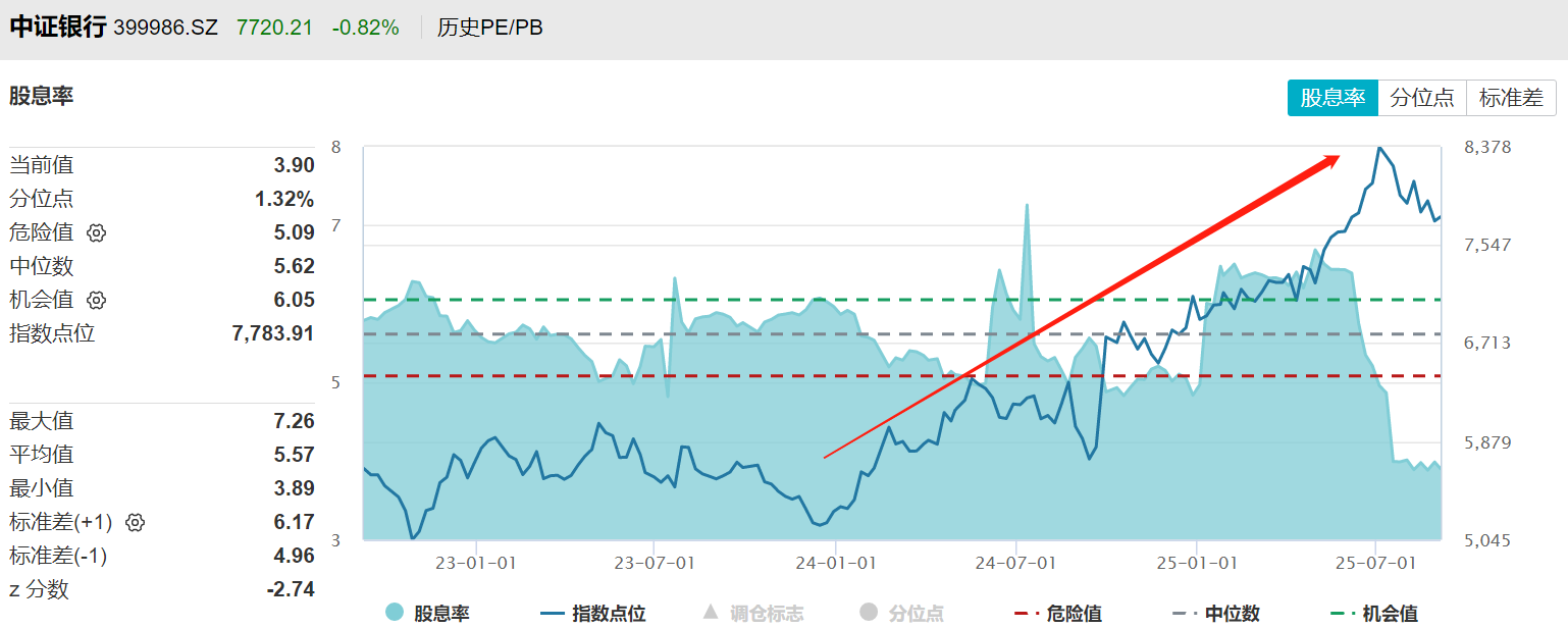 “高质料”红利受关爱在往日一年多的行情中,以银行动代表的高股息板块涨幅显耀,插足2025年后致使出现加快上升态势。跟着股价快速上升,板块估值不停擢升,股息率随之下落。