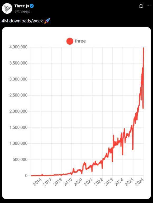Three.js 就成了阿谁绕不开的、统治级的贯通播放器,于是,数据就蹭蹭蹭暴涨了。
