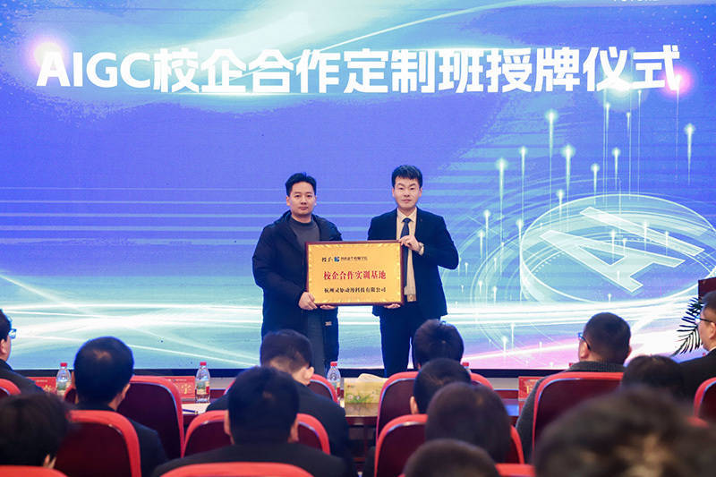 新华电脑教育AI新专科发布会现场校企配合定制班授牌典礼。新华电脑教育供图